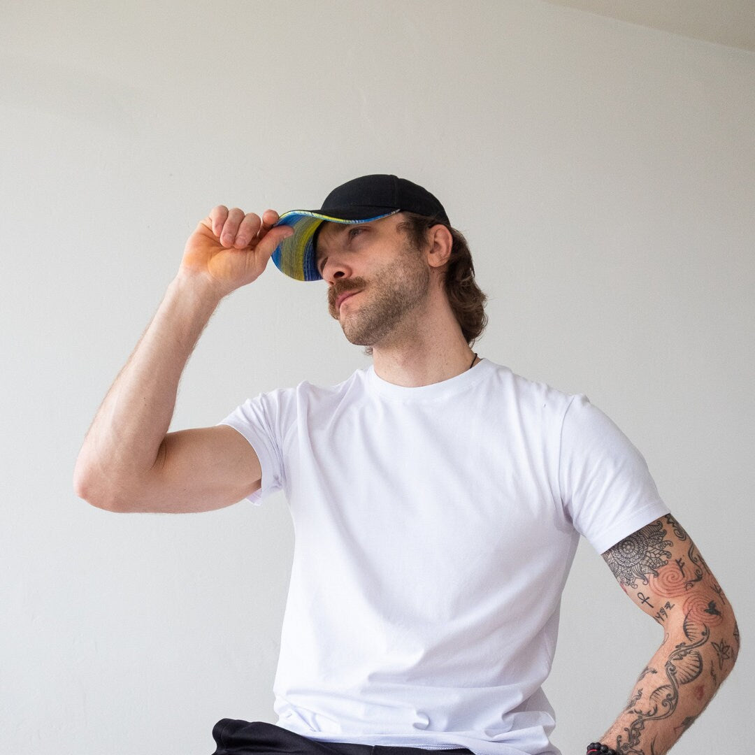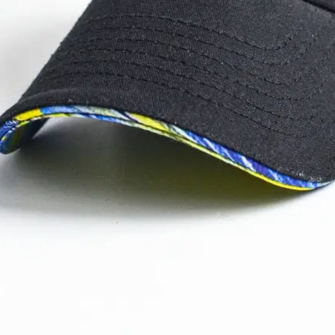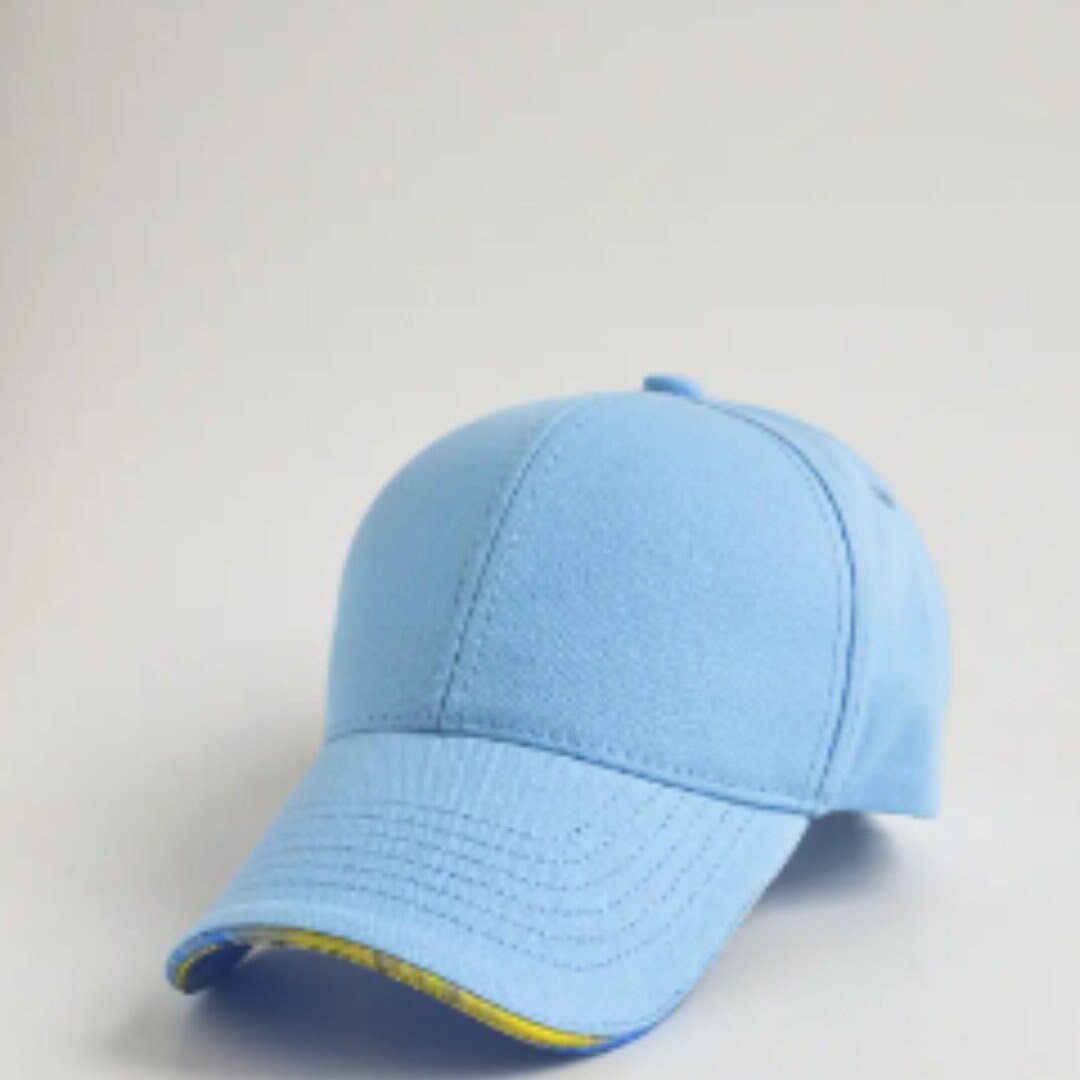 Complete your look with our Baseball Ukrainian Hat With a Bright Accent in Ukrainian Flag Colors featuring a unique yellow and blue print. This cap is the perfect accessory to showcase your love and support for Ukraine. A stylish piece from Ukraine that's also great for protecting you from the sun.
