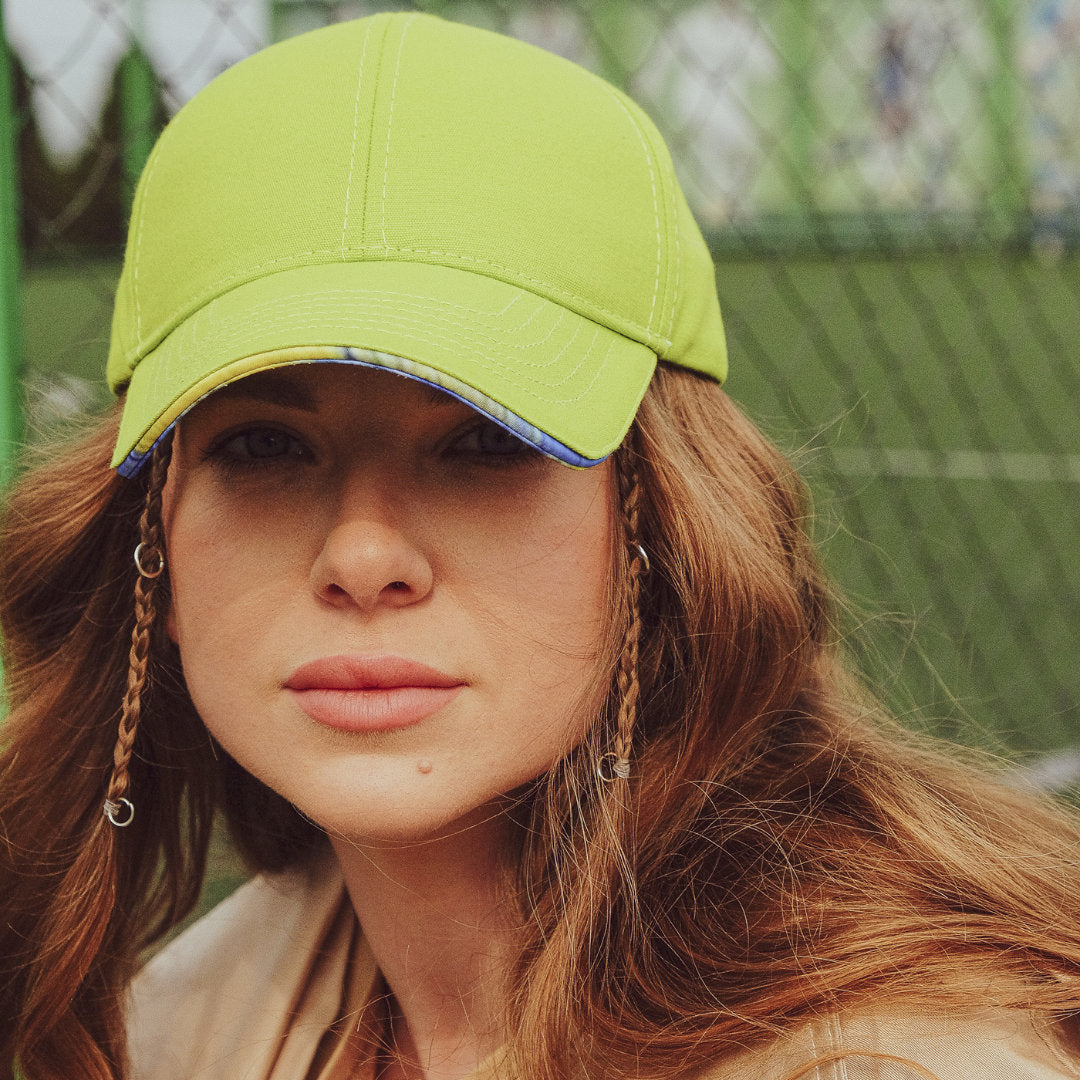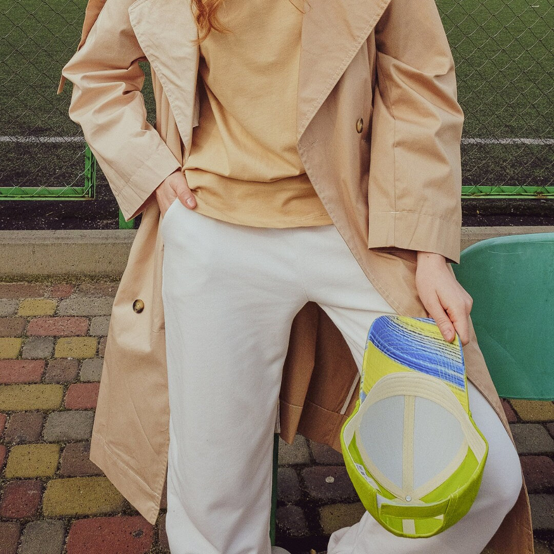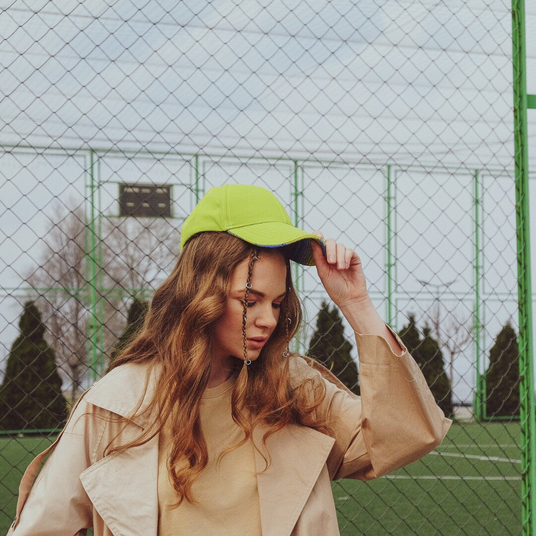 Complete your look with our Baseball Ukrainian Hat With a Bright Accent in Ukrainian Flag Colors featuring a unique yellow and blue print. This cap is the perfect accessory to showcase your love and support for Ukraine. A stylish piece from Ukraine that's also great for protecting you from the sun.
