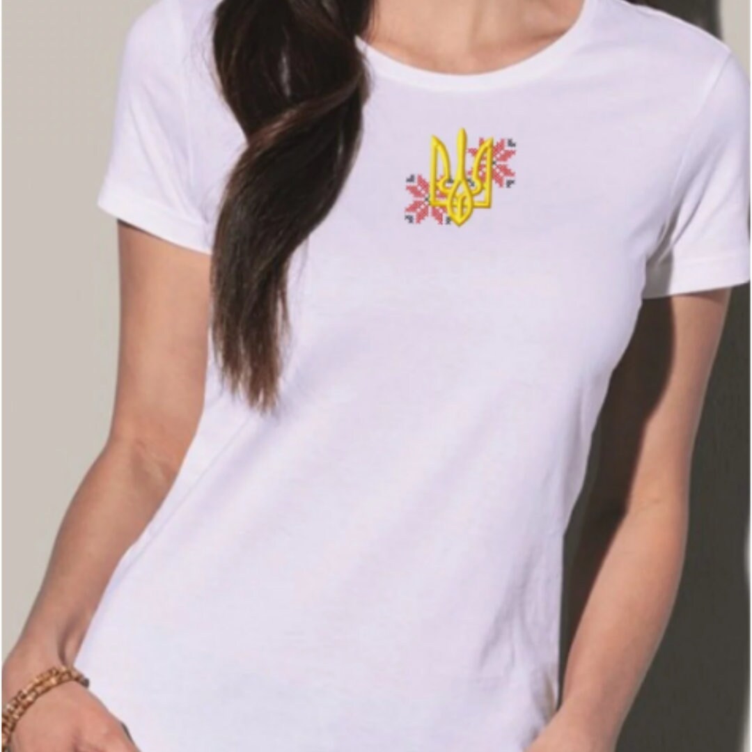Fashionable Women's Ukrainian T shirt with Embroidery and Trident (Футболка жін.)