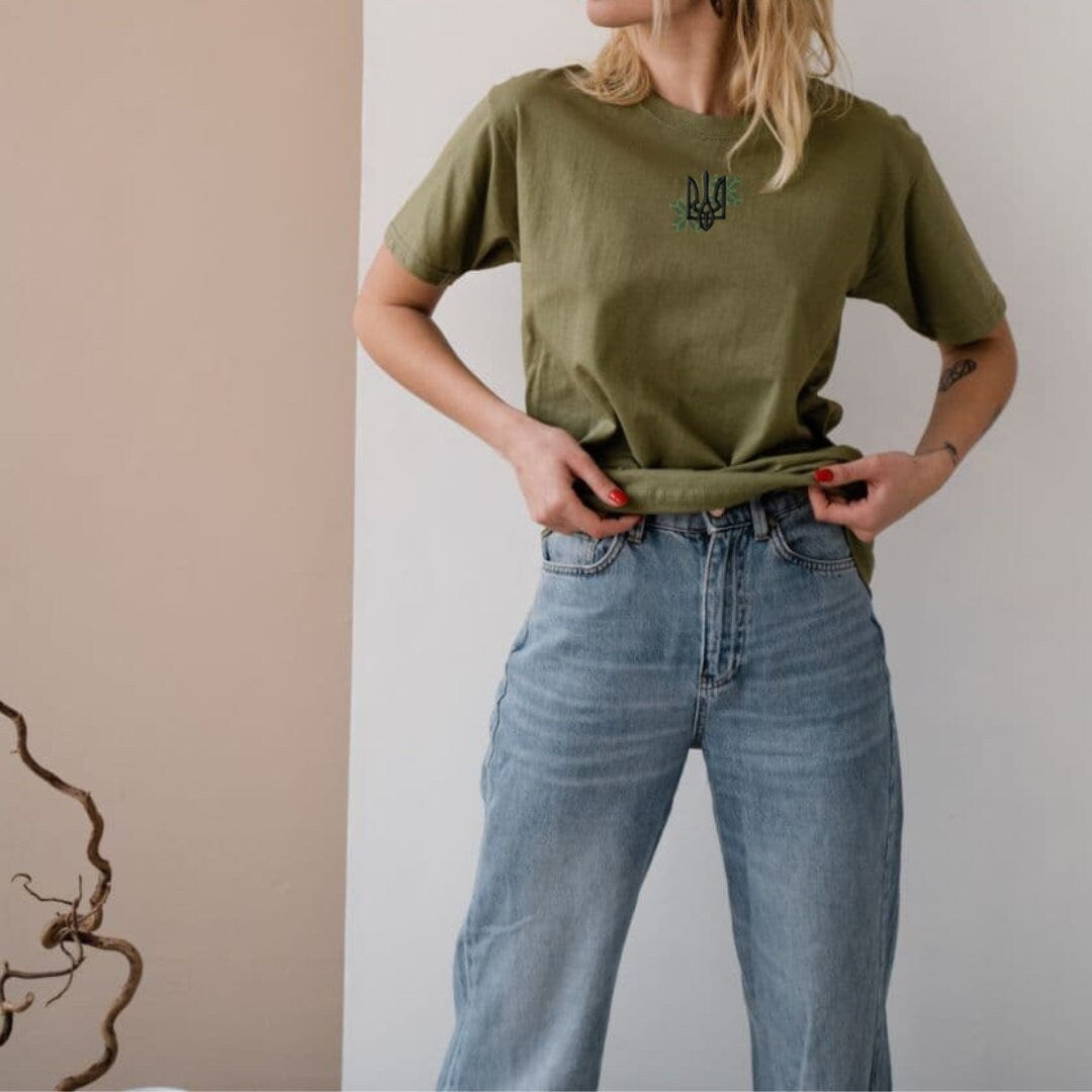 Fashionable Women's Ukrainian T shirt with Embroidery and Trident | Add Style with Ukrainian Design | Tryzub Symbol | from Ukrainian Shop