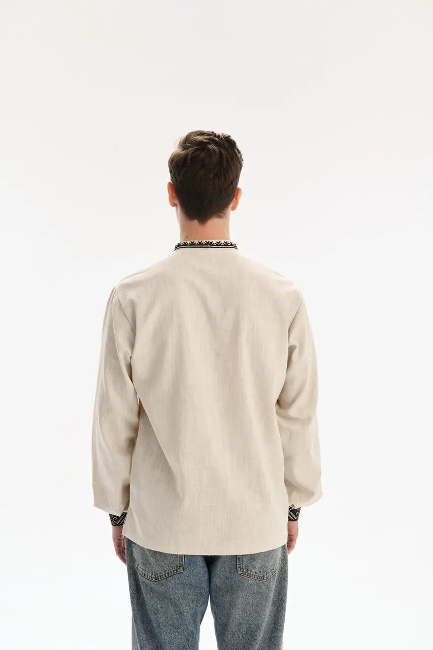 Traditional Ukrainian Vyshyvanka Shirt for Men in Nettle and Linen Blend with Machine Embroidery | Ukrainian Gift | Made in Ukraine