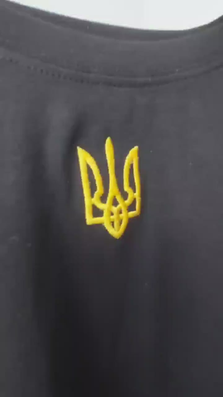 T-shirt with center embroidery. Ukrainian coat of arms embroidered.