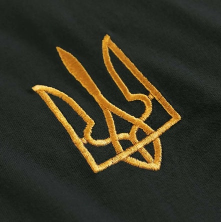 This Ukraine Zelensky trident embroidered men's long sleeve T-shirt from Ukrainian sellers was embroidered in Ukraine with impeccable attention to detail. The classic fitted silhouette and minimalistic embroidery of the Ukrainian trident will be a great addition to your wardrobe and will demonstrate your support for Ukraine at that difficult time.