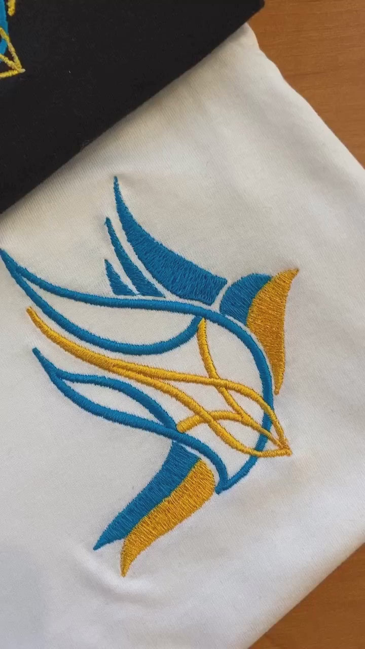 🌾Artistic Ukrainian embroidery in colors ukraine flag on this ukraine clothing - made in the form of a dove of peace with a stylized trident