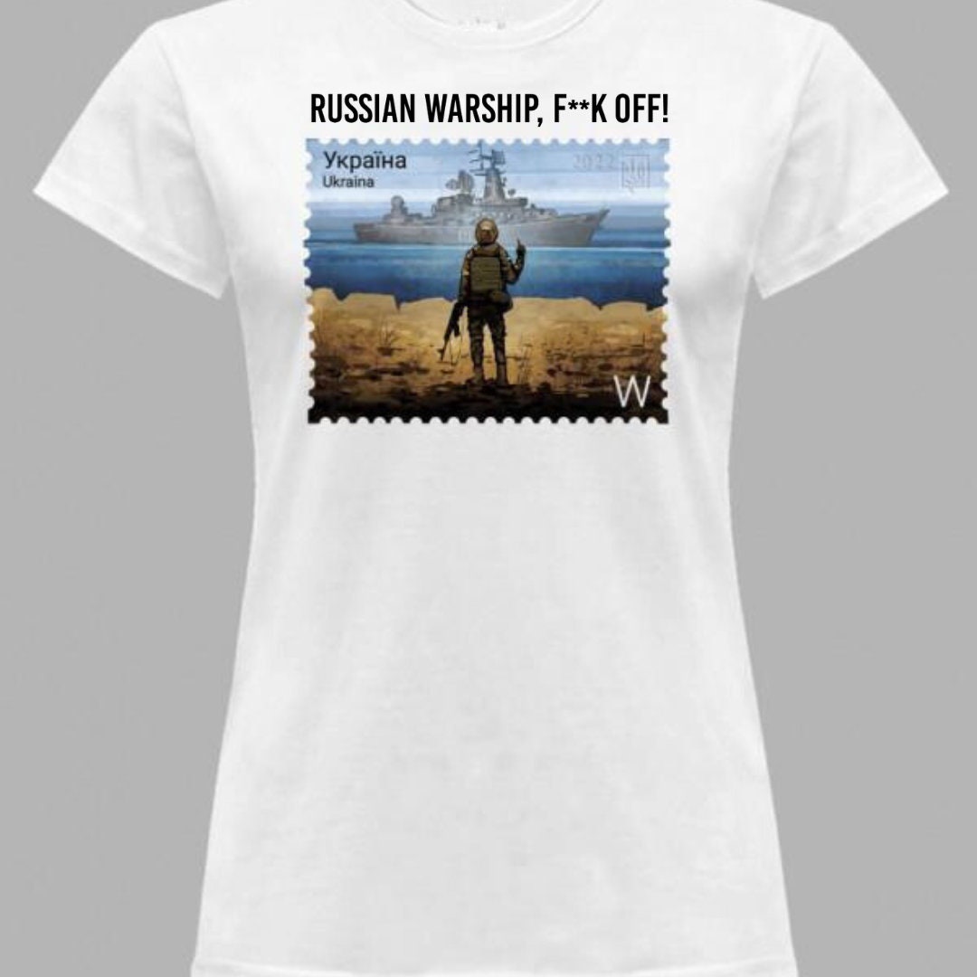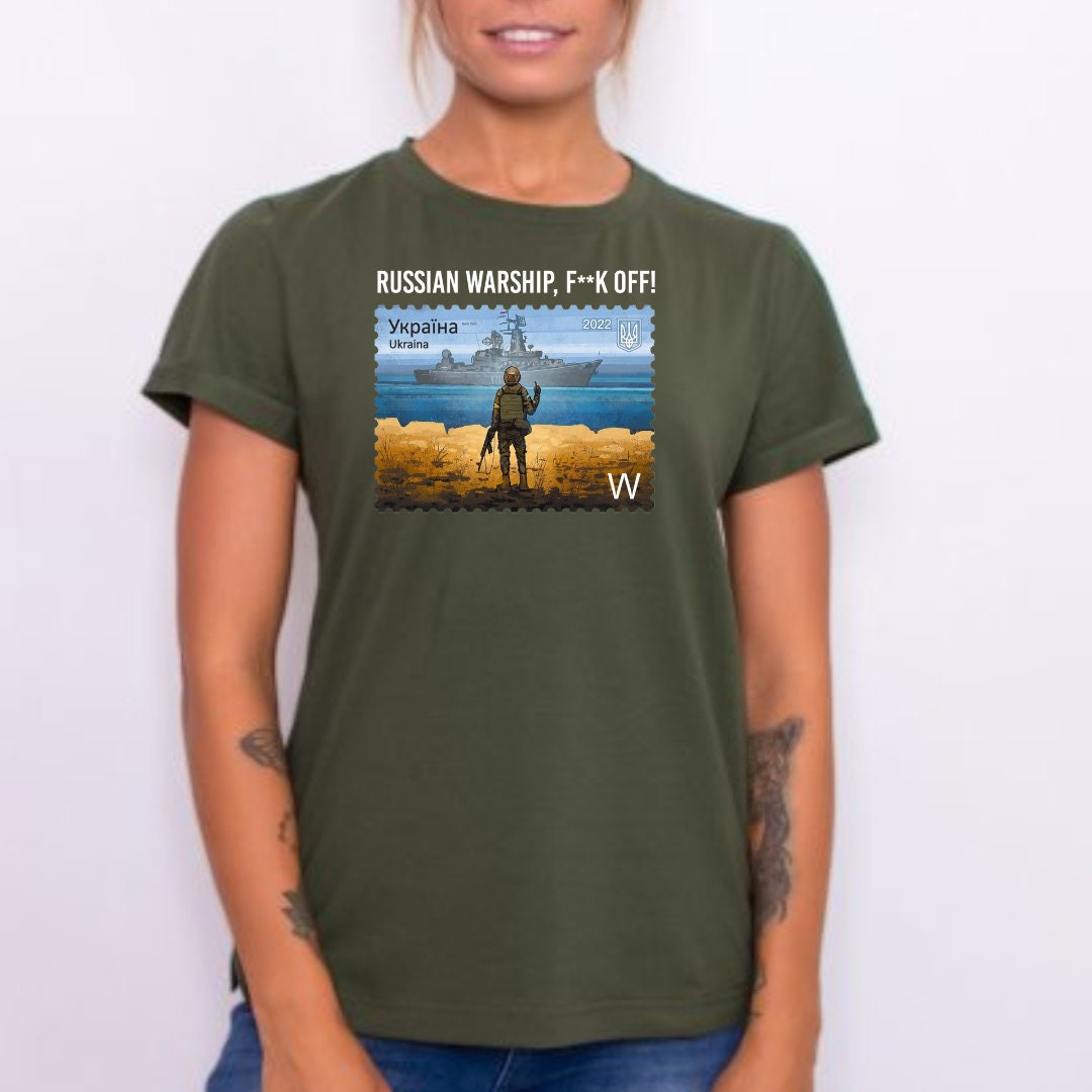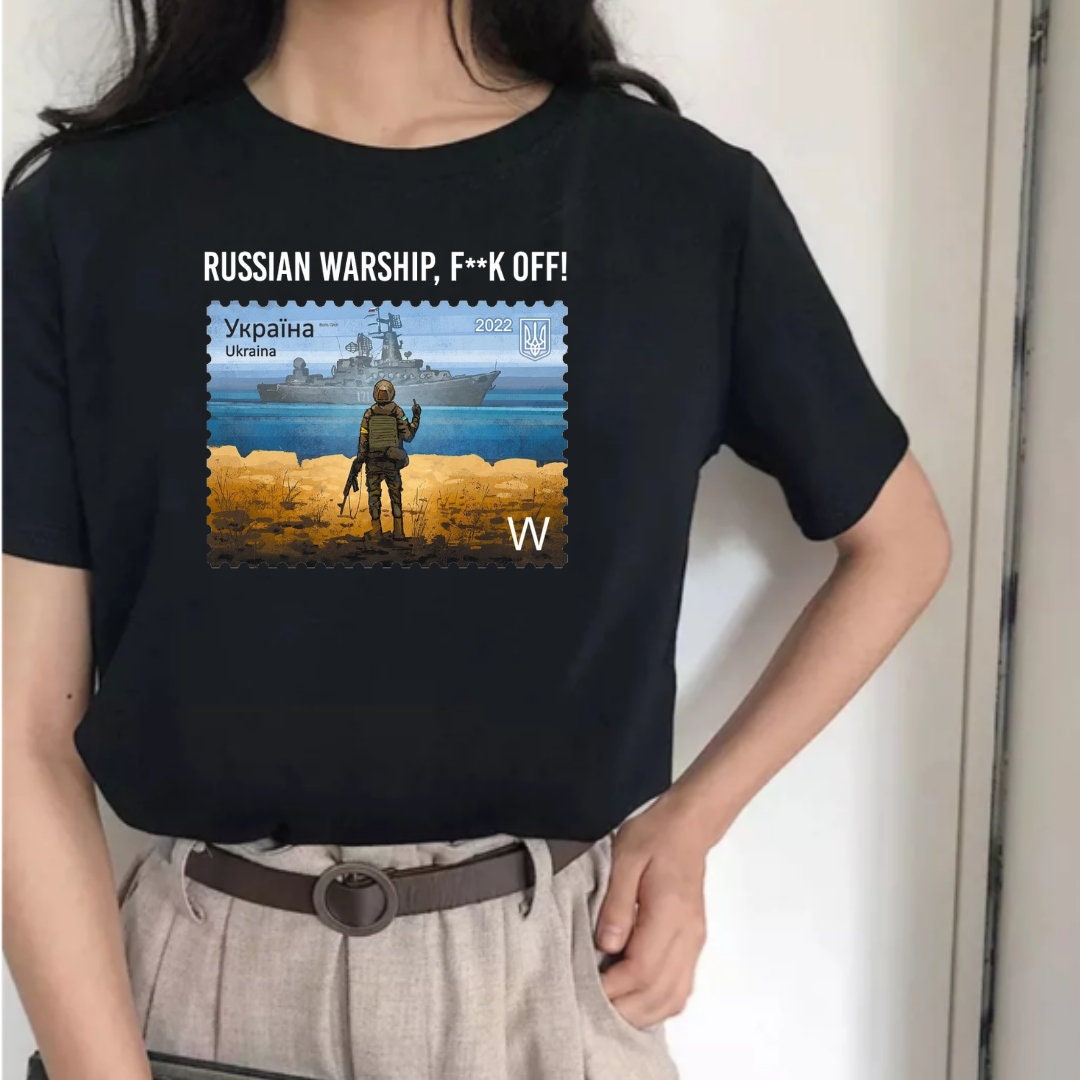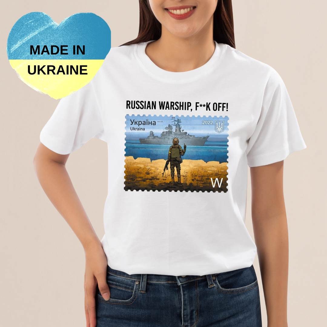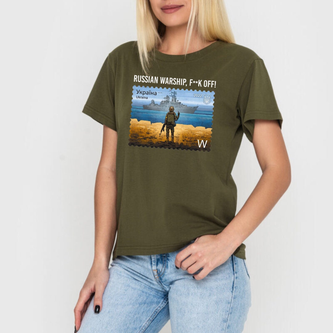 This unique Women's Ukrainian T Shirt with powerful Message, from Ukrainian Shop. This Ukrainian shirt carries a bold message that resonates with the hearts of many – ""Russian warship f**k off"" – a stand for Ukraine's sovereignty and strength. Showcasing exquisite Ukrainian design, this shirt is more than fashion; it's a statement of resilience.🕊️