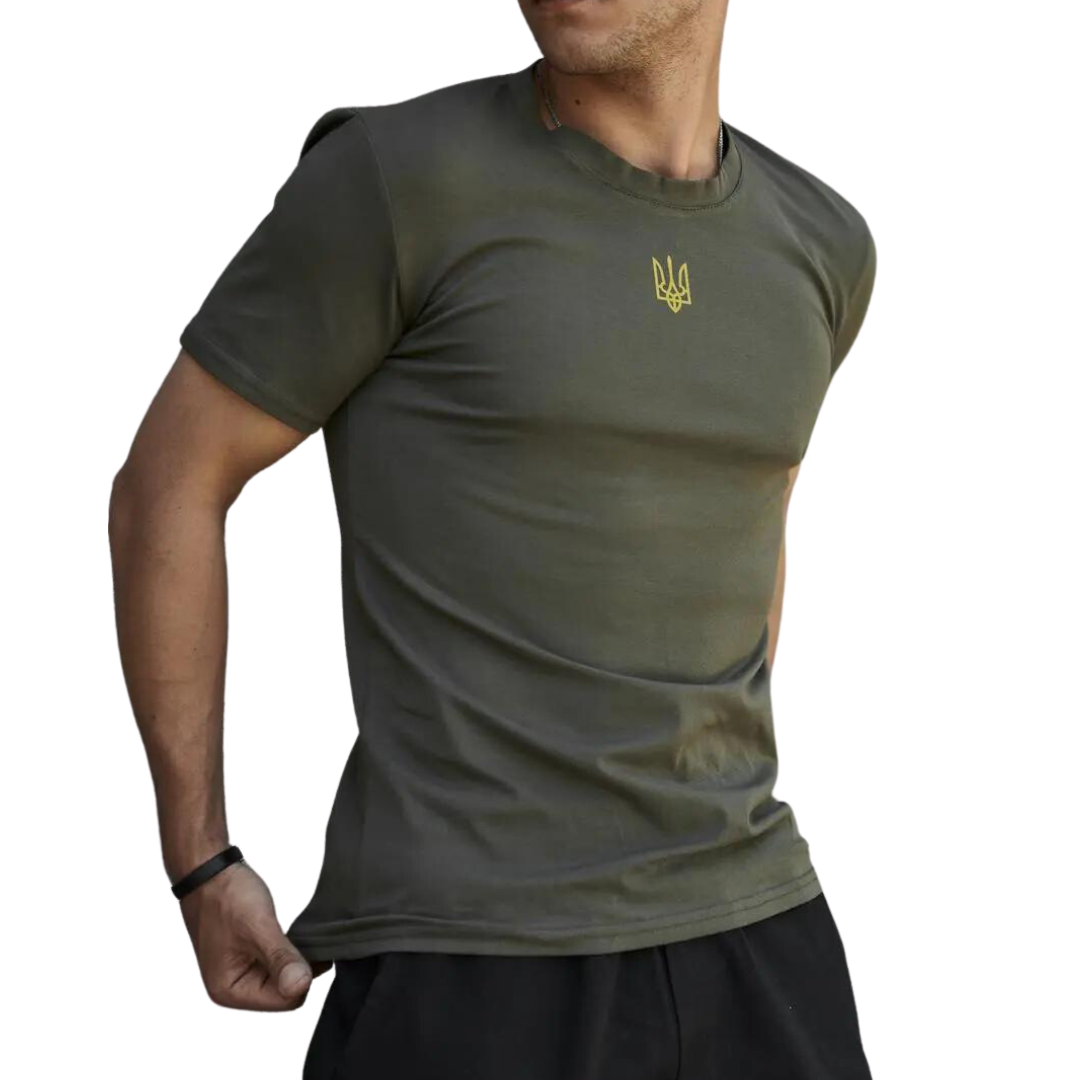 🌟 Military Green Trident T-shirt with Gold Ukraine Coat of Arms