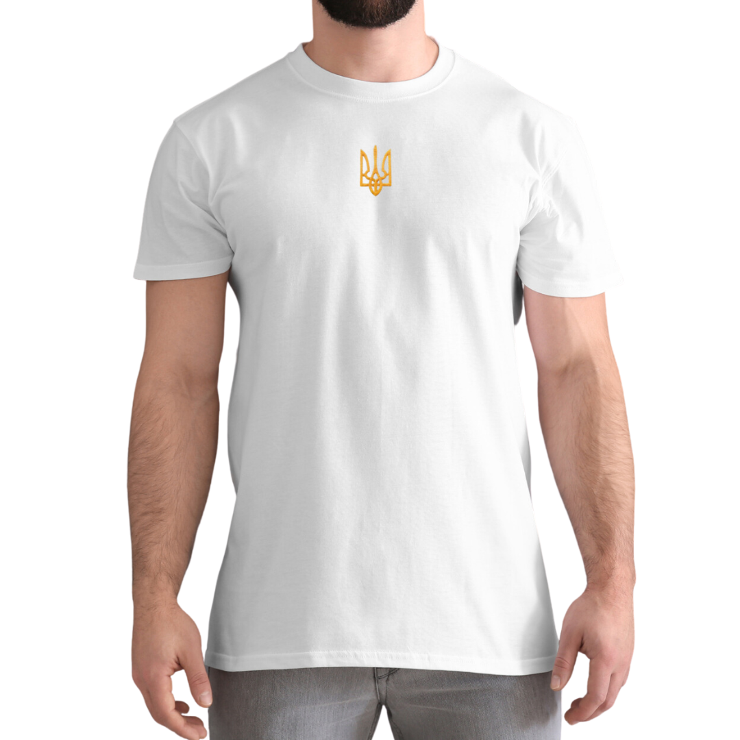 🌟 White Trident T-shirt with Gold Ukraine Coat of Arms