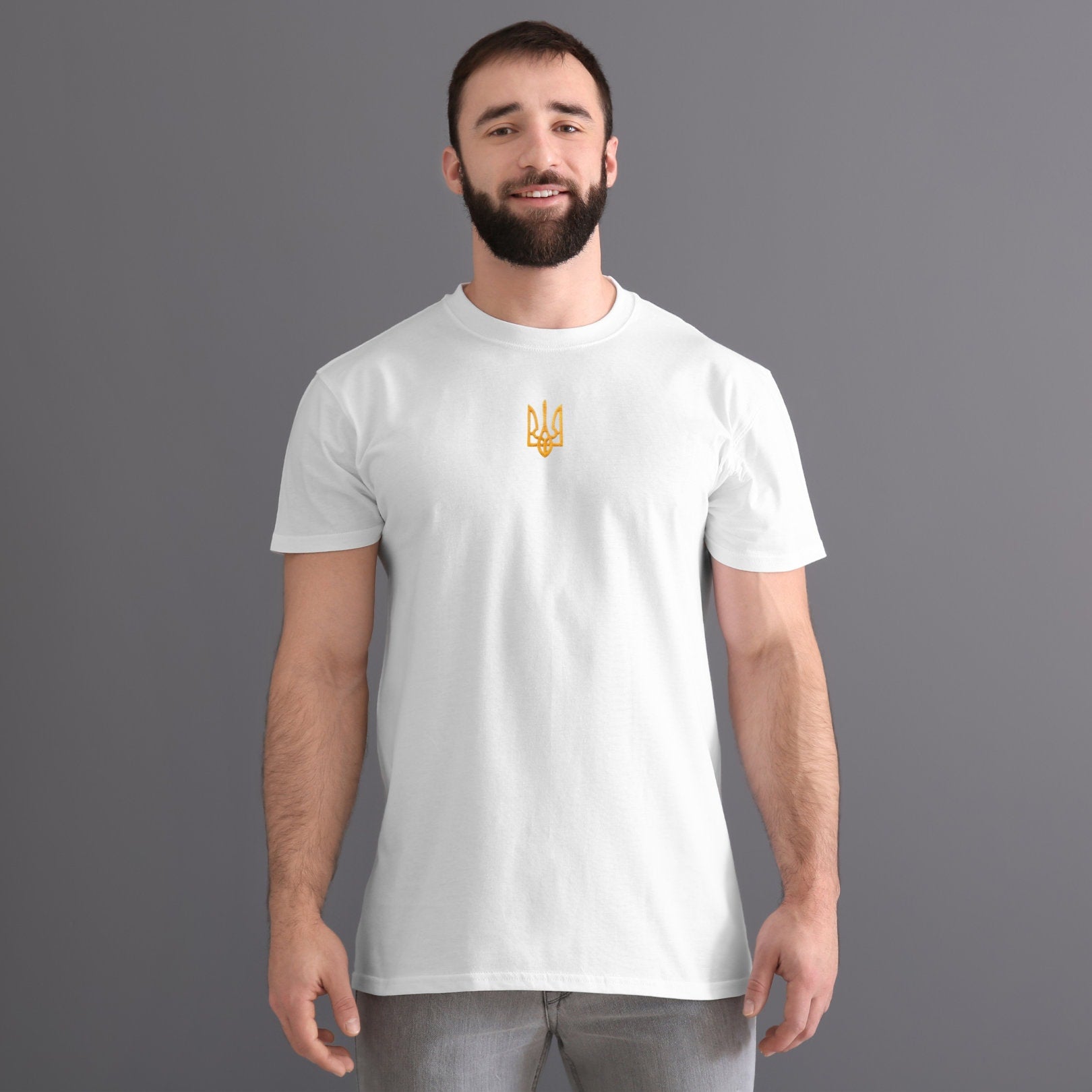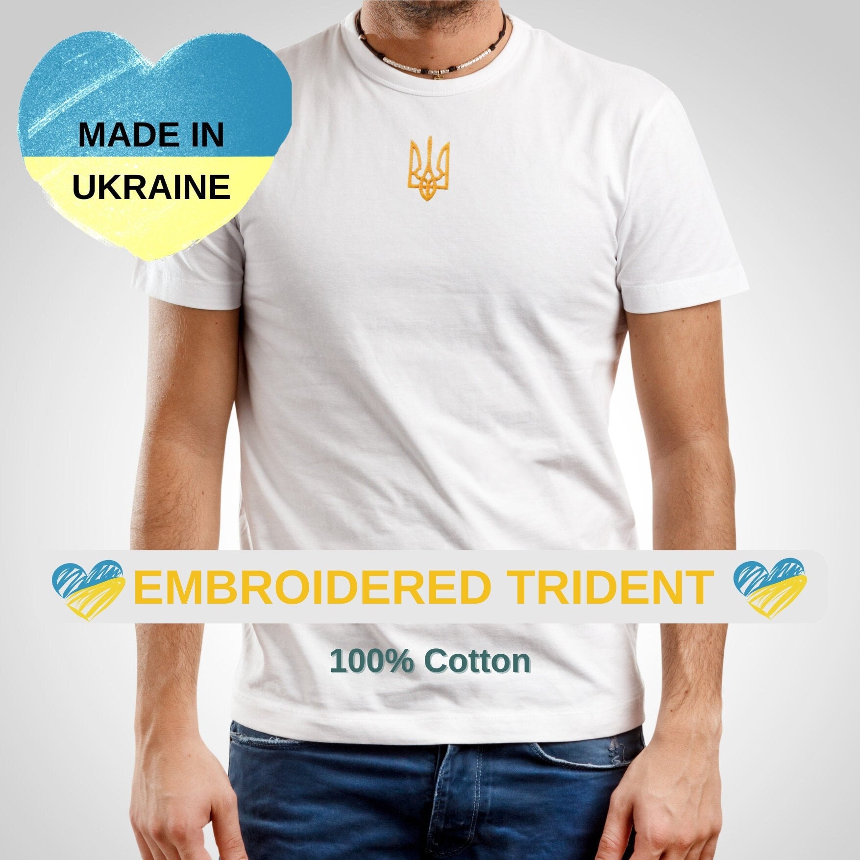 Elevate your style and show your support for Ukraine with our Zelensky T-shirt made in Ukraine! This Ukraine shirt from the Ukrainian sellers is crafted from 100% cotton, ensuring both comfort and durability. It features a beautifully embroidered Ukrainian Tryzub, symbolizing the strength and unity of Ukraine. Designed with a crew neck and a lightweight fabric, this Ukrainian T shirt offers exceptional comfort for everyday wear. It is available in different colors and sizes.