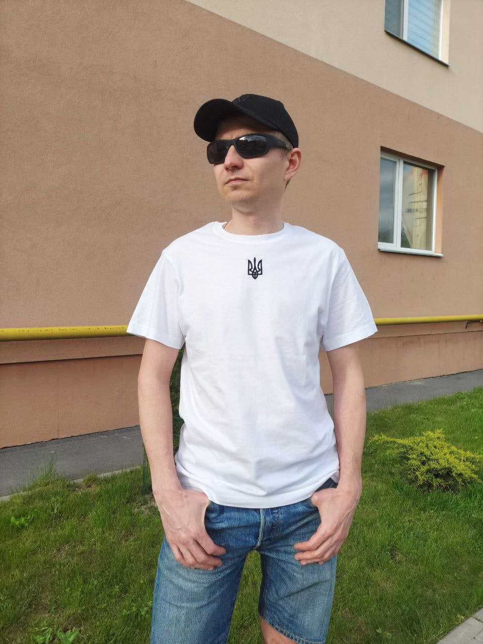 🌟 White Trident T-shirt with Black Ukraine Coat of Arms